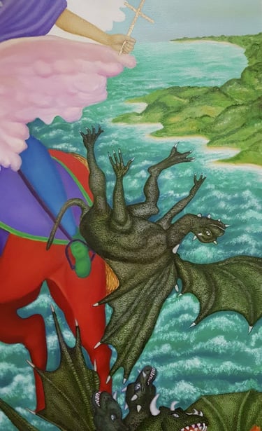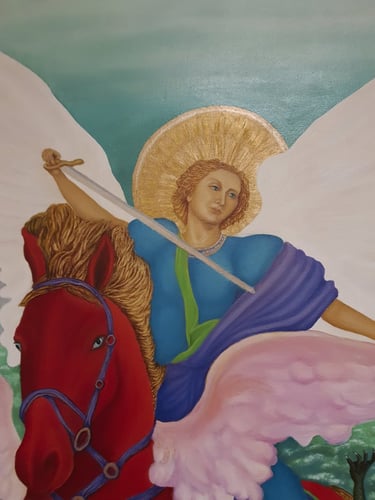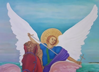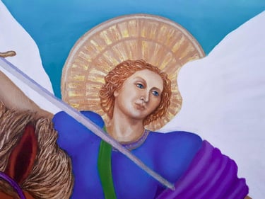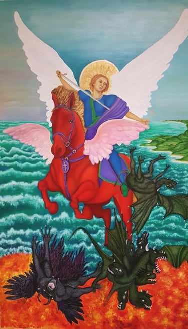 Lena Tchibor (2020) Archangel Michael. The Icon for Padre Pio's Altar. Oil on canvas, 170x120 cm.