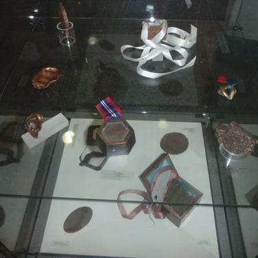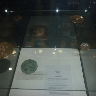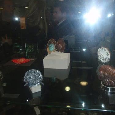 Lena Tchibor's bronze medal (Möbius strip) "Summa Summarum" on display at the British Art Medal Society Exhibition (14th March - 14th April 2011) at the School of Jewellry, BIAD, Birmingham City University. Printed Catalogue.